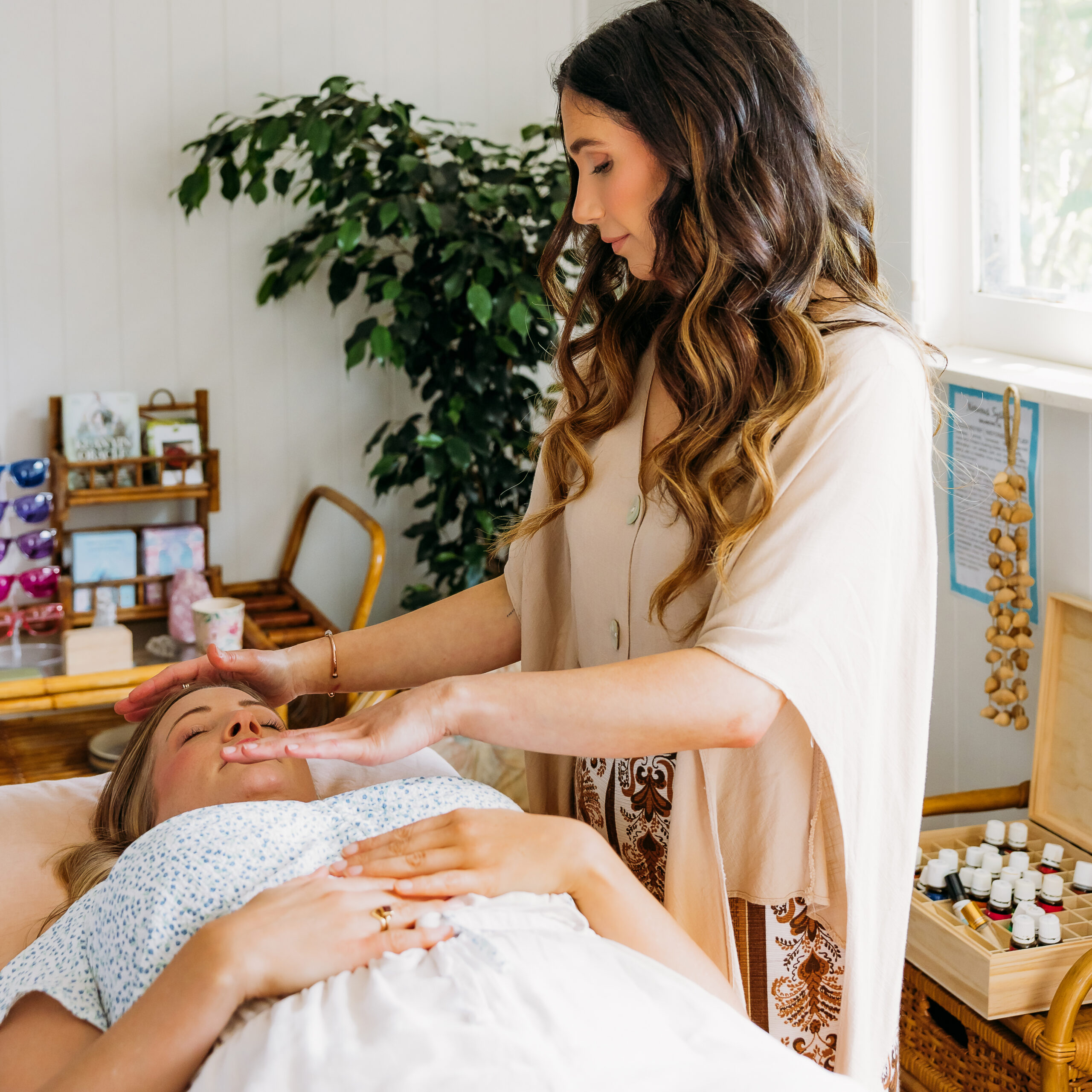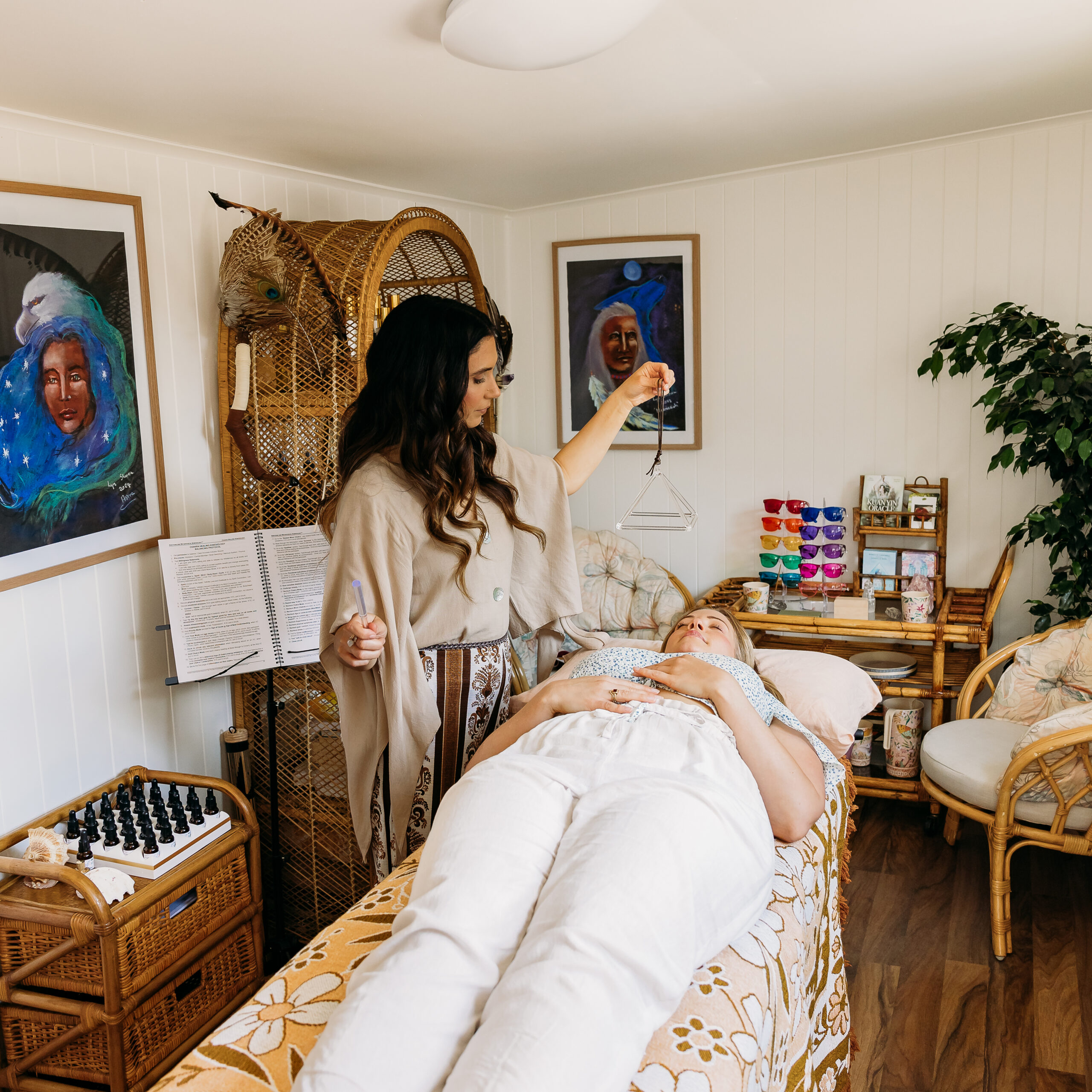 Our session begins with a heart to heart conversation. Together, we’ll tune into your heart space, exploring any physical or emotional stressors you’re carrying. From there, we’ll clarify how you want to feel, set an intention for what you’d like to release, and create a goal for our session together.